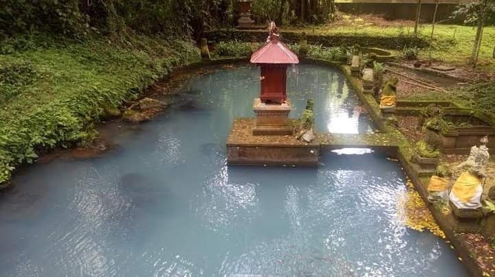 Air kolam di tempat itu memang kelihatan berwarna sangat biru, namun jika diambil airnya sangat jernih. Belum ada yang mengetahui dengan pasti kenapa air kolam itu kelihatan berwarna biru.