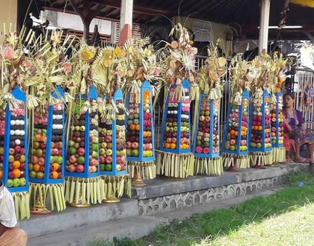 Kenapa namanya Capah? mungkin jawabannya alasannya yaitu menggunakan penyangkaan (warna biru), apakah kau pernah lihat bentuk Capah menyerupai ini selain di desa Tamblang dan juga di desa Bila Bajang? Nah itulah uniknya Capah ini yang merupakan persembahan dari bermacam buah-buahan hasil bumi, kue, telor dan juga berisi daging ayam utuh satu ekor dan sampian yang disusun di atas dulang. Pada jaman dahulu Bentuk Capah ini tidak sama tingginya menyerupai sekarang, semenjak beberapa tahun kemudian gres tinggi Capah disamaratakan dan juga bentuknya.