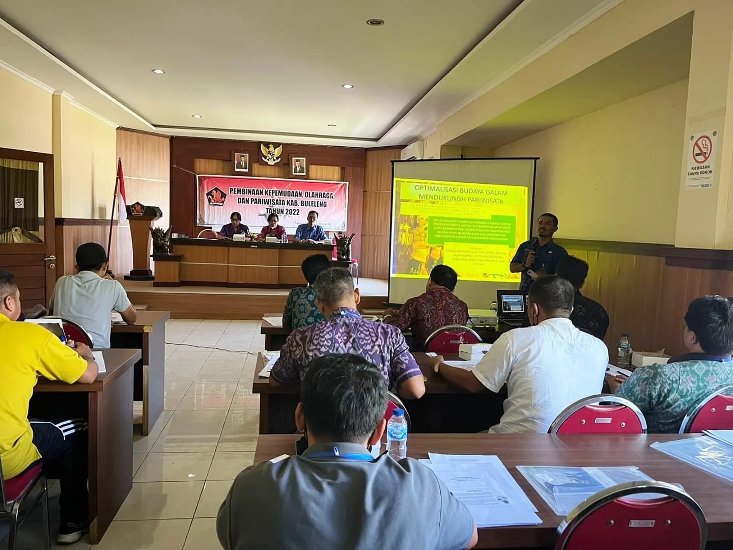Dinas Kebudayaan Kabupaten Buleleng menginstruksikan kepada Kepala Bidang Kesenian untuk menugaskan Pamong Budaya Ahli Muda Unit Substansi Kesenian Modern selaku Anggota Tim Pembinaan Organisasi Kepemudaan Olahraga dan Pariwisata telah melaksanakan tugas untuk memberikan Pembinaan di Bidang Kebudayaan dengan materi tentang :
