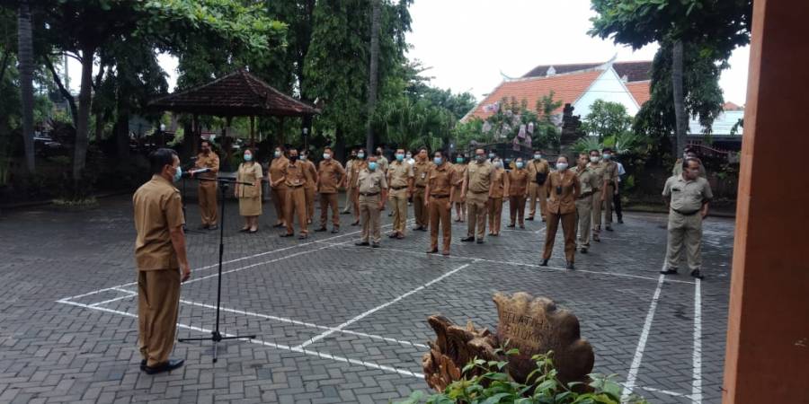 Mengawali tahun baru 2021, Kadispar Buleleng pimpin apel pagi, Senin (4/1) pagi. Dengan tetap mengindahkan standar protokol kesehatan tatanan hidup baru "New Normal" seluruh staf berbaris dengan mengatur jarak aman Physical Distancing.