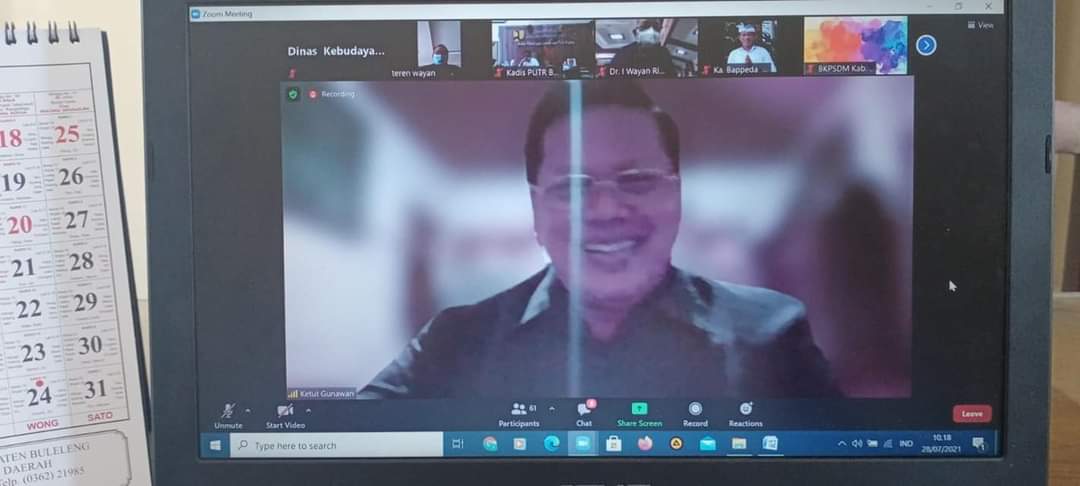 Sekretaris Dinas Kebudayaan Kabupaten Buleleng mewakili Kepala Dinas Kebudayaan Kabupaten Buleleng menghadiri rapat Pimpinan dan Anggota DPRD dengan Pemerintah Daerah tentang Pendapat akhir Fraksi Fraksi DPRD atas Ranperda Pertanggungjawaban pelaksanaan APBD Tahun Anggaran 2020 via Zoom Meeting (28/7).