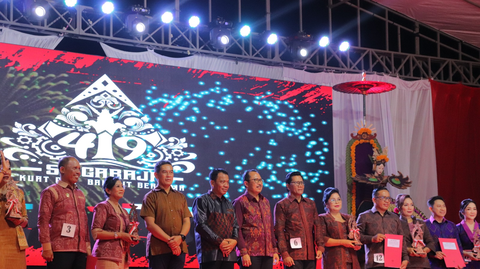 Hari Ke-2 Malam Kebersamaan HUT Kota Singaraja Ke-419 "Semarak Buleleng Bangkit" yang berlangsung di di Lapangan Bhuana Patra Jln. Udayana, Singaraja Rabu, 29 Maret 2023. Adapun maksud dan tujuan pelaksanaan peringatan HUT Kota Singaraja ke-419 ini adalah untuk memperingati momentum sejarah kelahiran kota Singaraja dengan spirit kuat dan bangkit bersama serta merefleksikan harapan besar masyarakat kota Singaraja dalam perkembangan situasi dan zaman menuju kebangkitan kota Singaraja serta menyongsong tatanan Bali Era Baru.