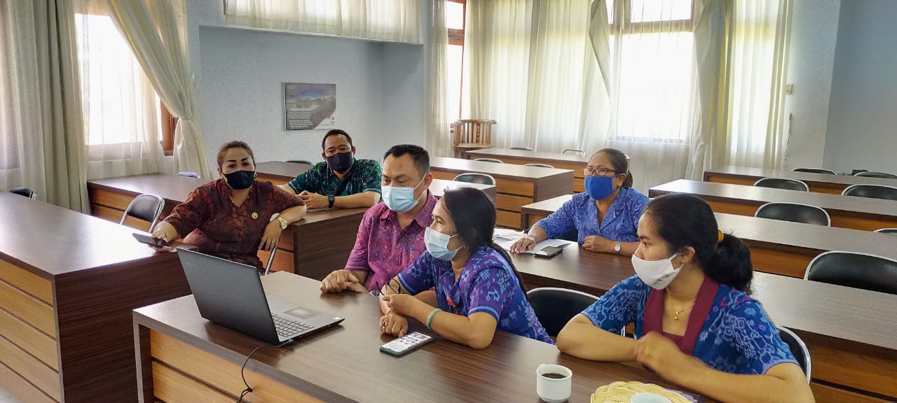 Plt Kabid SDP Budi Asrini beserta Plt Kasi PPSDP Putu Arya Wirasuta mengikuti zoom meeting Sosialisasi Pemilihan Puteri Otonomi Daerah 2021