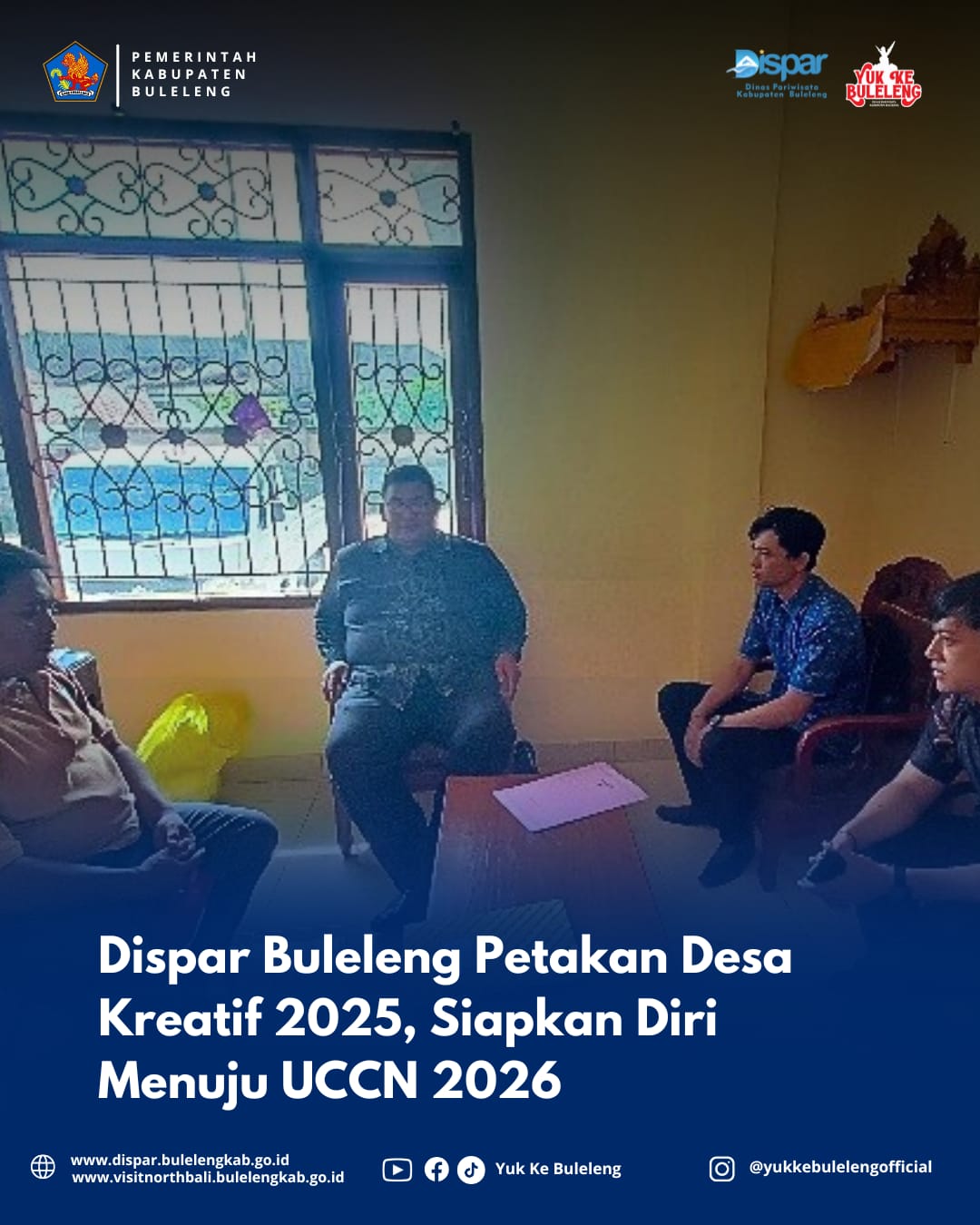 Singaraja, 8 April 2025 – Dalam rangka memperkuat Kabupaten Buleleng sebagai Kabupaten Kreatif dan mendukung pencapaian tujuan menjadi bagian dari Jejaring Kota Kreatif UNESCO (UCCN) pada tahun 2026, Dinas Pariwisata Kabupaten Buleleng melalui Bidang Sumber Daya Pariwisata Sub Kegiatan Ekonomi Kreatif, melakukan pemetaan Desa Kreatif di Kabupaten Buleleng pada tahun 2025.