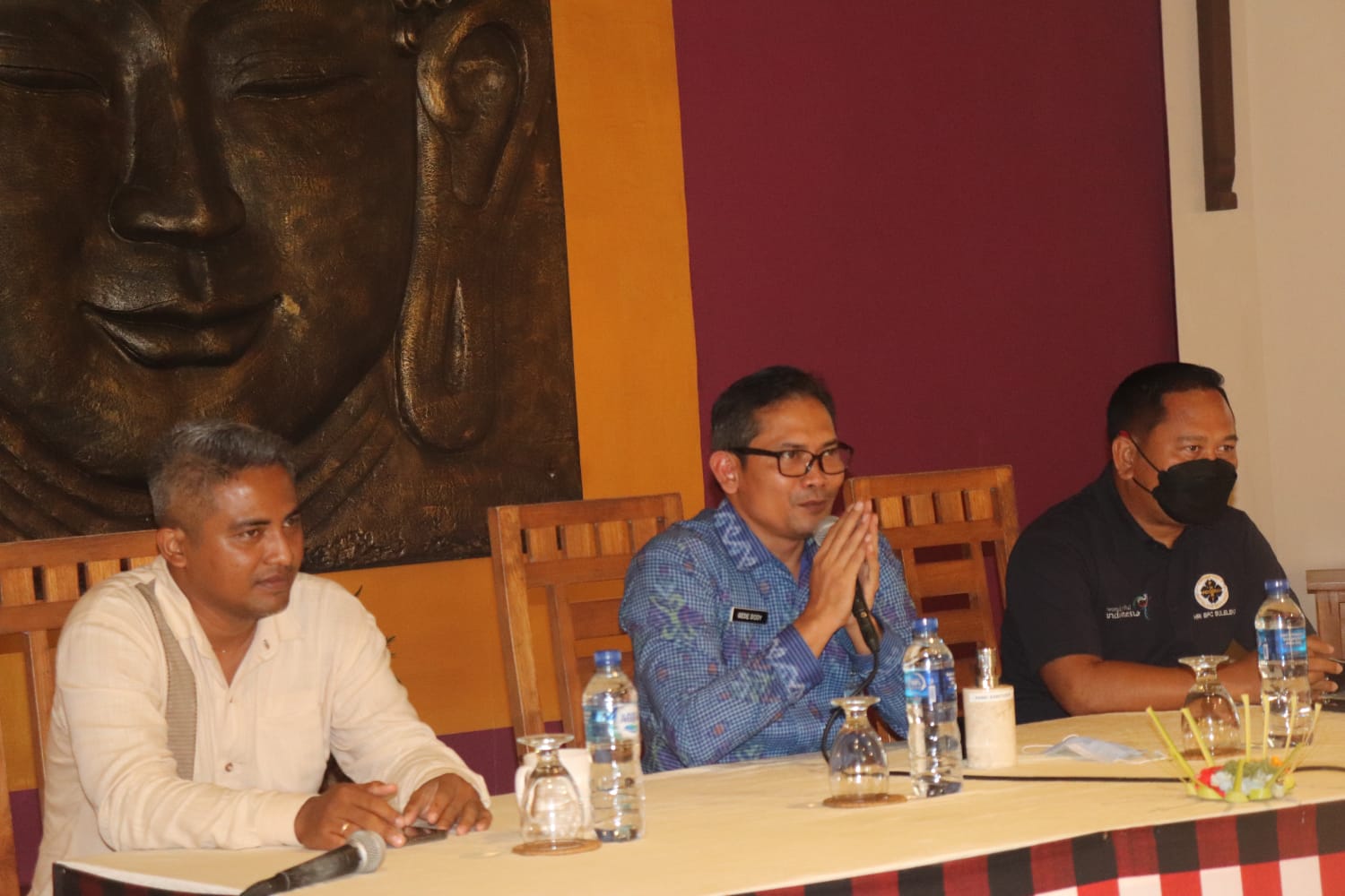 Akhir kata Plt. Kadispar mengajak semua peserta untuk bersama-sama saling rangkul untuk melakukan Resiliensi Pariwisata Buleleng di tengah Pandemi. Acara ini telah menerapkan protokol kesehatan dengan adanya pengecekan suhu tubuh dan penyediaan handsanitizer serta menjaga jarak selama acara berlangsung.