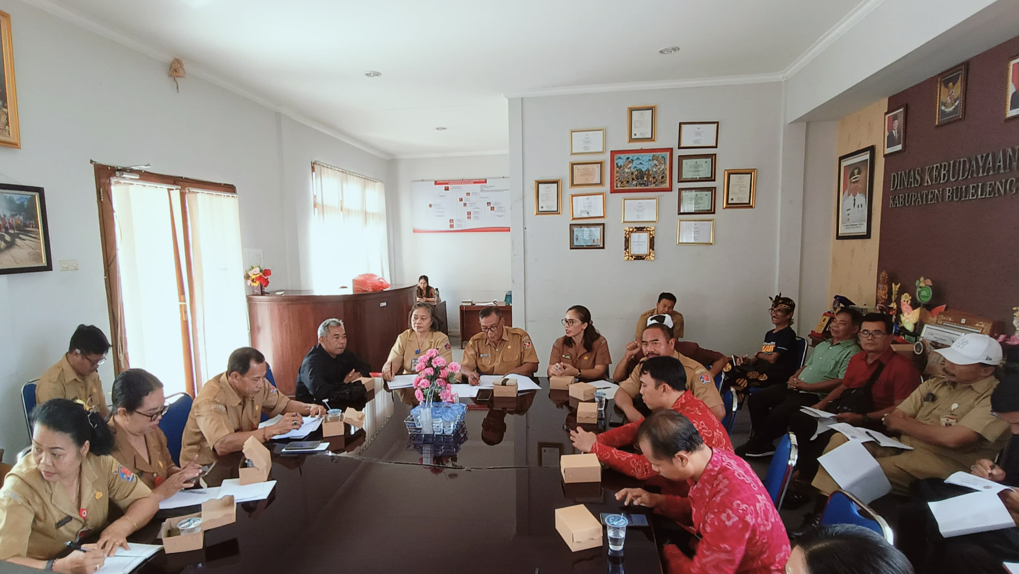 Rapat diadakan di Ruang Rapat Dinas Kebudayaan Kabupaten Buleleng, yang di pimpin langsung oleh Kepala Bidang Sejarah dan Cagar Budaya yang didampingi oleh Kepala UPTD. Gedong Kirtya dan Plt. kasubag GK, Serta para undangan lainnya.