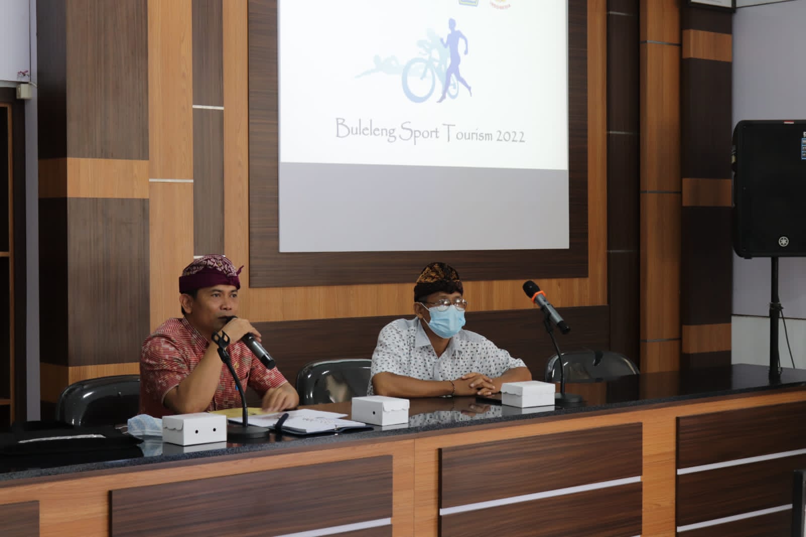 Kepala Dinas Pariwisata Kabupaten Buleleng Gede Dody Sukma Oktiva Askara,S.Sos ,M.Si membuka kegiatan rapat lanjutan Sport Tourism Tahun 2022 yang didampingi oleh Ketua Koni Kabupaten Buleleng I Ketut Wiratmaja di Aula Dinas Pariwisata Kabupaten Buleleng pada kamis (13/01/2022).