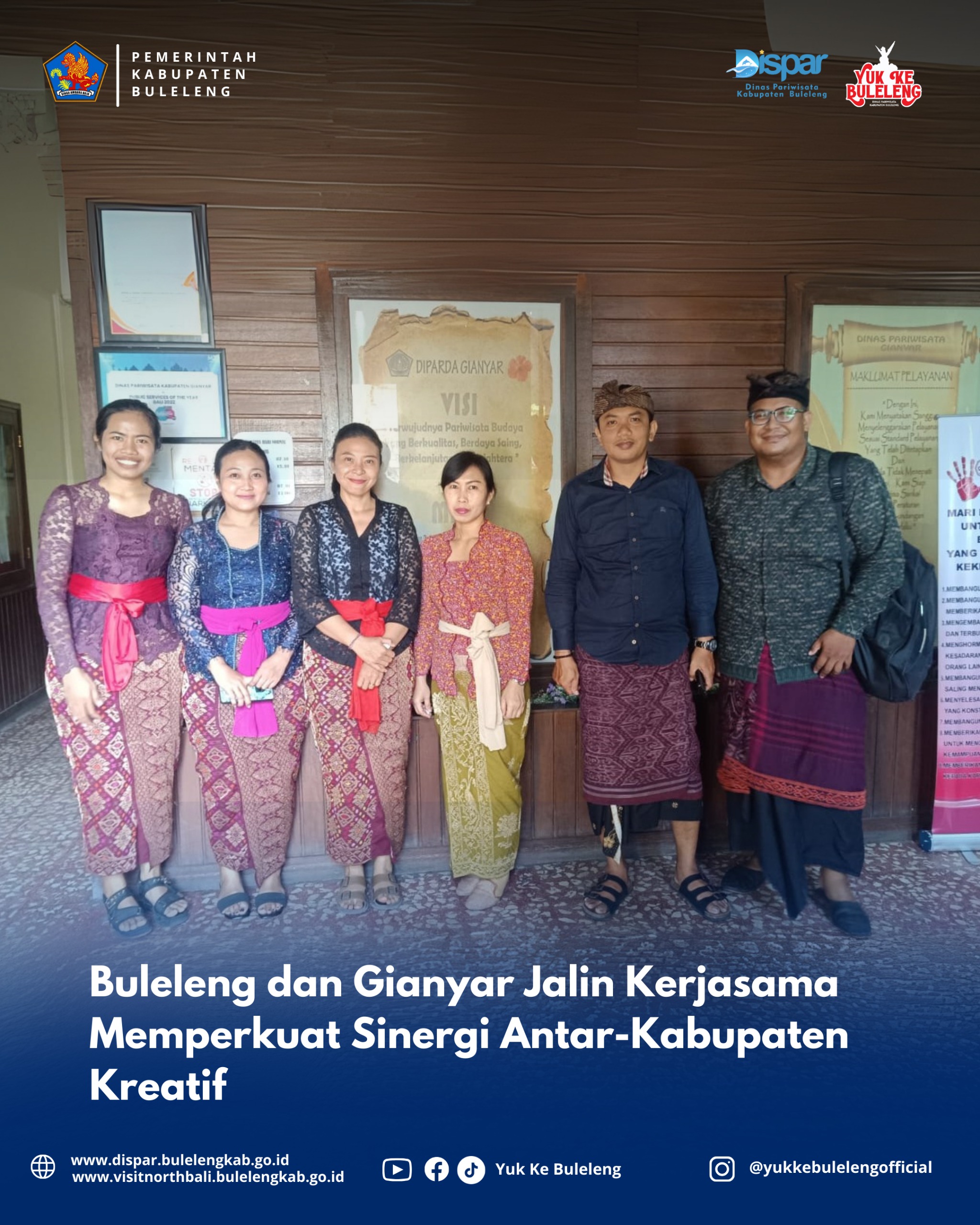 Gianyar, 25 September 2025 – Dinas Pariwisata Kabupaten Buleleng melakukan langkah strategis dalam menindaklanjuti penetapan daerahnya sebagai Kabupaten/Kota (KaTa) Kreatif Indonesia. Melalui kunjungan koordinasi ke Dinas Pariwisata Kabupaten Gianyar, Buleleng berupaya memperkuat sinergi antar-kabupaten kreatif di Bali.