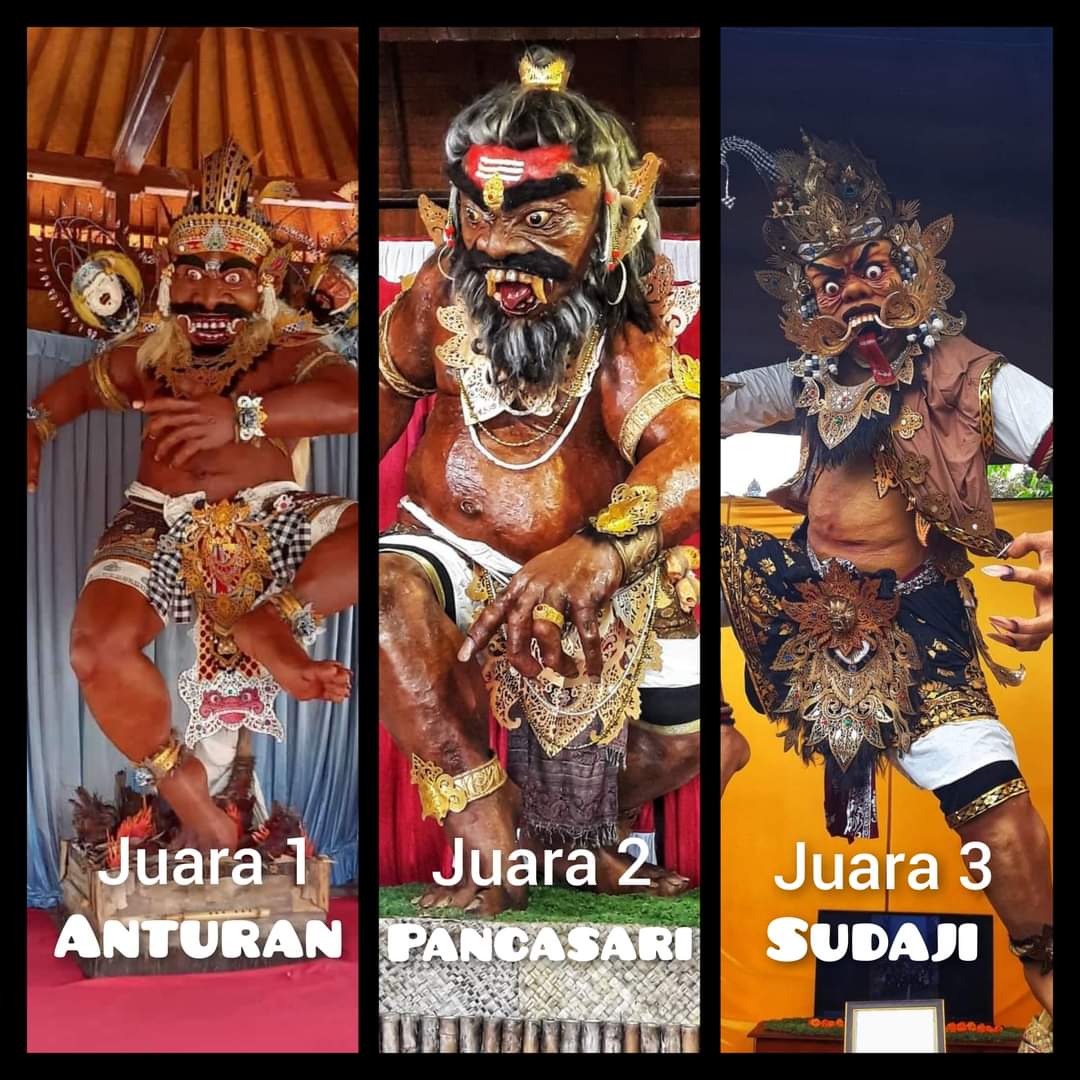 1. Juara 1 (Ogoh-ogoh dengan judul Detya Manaru, STT. Catur Yoga, Desa Adat Anturan dengan point nilai 595)