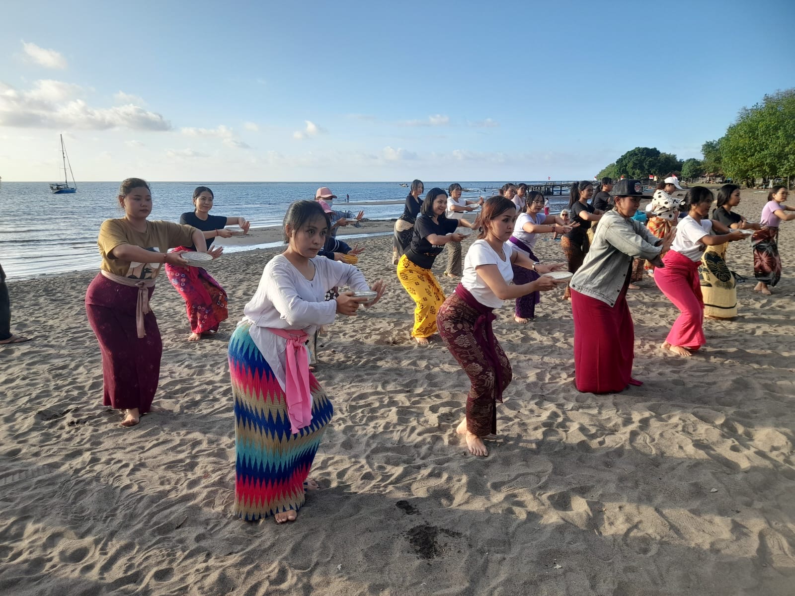 Staf Dinas Kebudayaan Kabupaten Buleleng mengikuti latihan Tari Pendet yang bertempat di Pantai Lovina yang dimana menjelang Lovina Festival 2024, Jumat (2/8/2024)