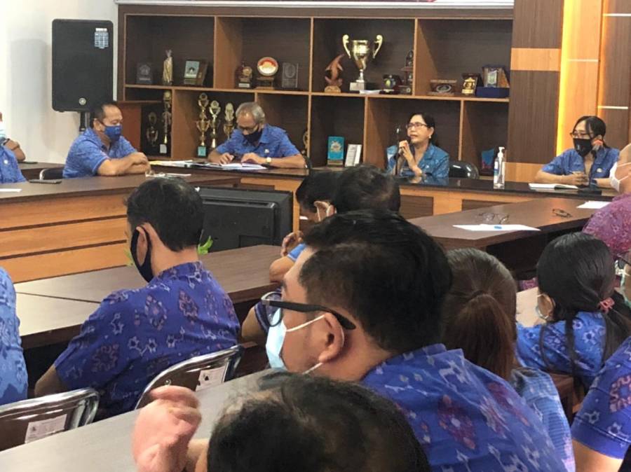PLT Kepala Dinas Pariwisata Buleleng Ni Made Rousmini,S.Sos,M.AP didampingi Kabid Industri Putu Suryani, SS dan Kabid Destinasi Ketut Suteja, SE berkesempatan memberikan arahan kepada staf Dispar bertempat di ruang rapat Dispar, Selasa (23/2) pagi.
