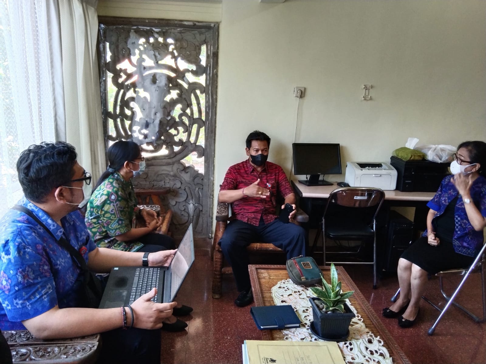 Dinas Pariwisata Kab. Buleleng melalui Kepala Bidang Industri Pariwisata, Putu Suryani, SS melakukan koordinasi dengan Kepala Bidang Industri Pariwisata Provinsi Bali, Ni Nyoman Ayu Andriani,S.H.,MH Perihal Kelanjutan Pelaksanaan Verifikasi Protokol Tatanan Kehidupan Era Baru Tahun 2022. Kepala Bidang Industri Pariwisata Kab. Badung, Ngakan Putu Triariawan, S.H. juga turut hadir dalam koordinasi tersebut.