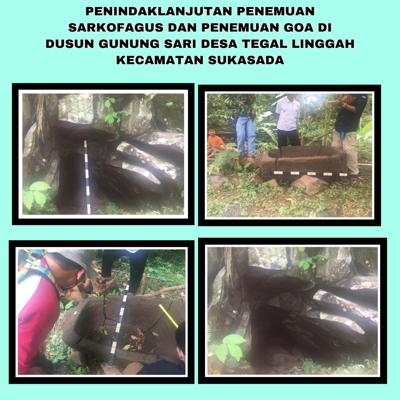 Berdasarkan laporan masyarakat dusun gunung sari desa tegal linggah kecamatan sukasada, tentang adanya penemuan sarkofagus, dinas kebudayaan kabupaten buleleng Bersama BALAR, BPCB dan akademisi sejarah UNDIKSA melakukan kunjungan untuk menindaklanjuti penemuan tersebut. Dari hasil tindak lanjut tersebut Kepala Balai Arkeologi I Gusti Ngurah Suarbhawa mengatakan , bahwa penemuan sarkofagus ini menggambarkan bahwa di desa ini dulunya pernah ada kehidupan pada jaman neolitikum, menurut beliau data data yang di dapatkan dari identifikasi sarkofagus ini kurang memadai untuk dapat di Tarik kesimpulan umurnya, Kepala BALAR I Gusti Ngurah Suarbawa menyangkan jika ada temuan sebelumnya yang berupa gelang perunggu dan gigi manusia yang sudah di hancurkan , karena menurut beliau benda bvenda tersebut dapat menjadi data akan umur dan pada zaman apa manusia purbakala ini hidup. Tim Cagar Budaya dari BPCB bidang pengamanan dan penyelamatan I Dewa Gede Maruti, SH mengatakan terhadap penemuan sarkofagus ini beliau berharap dapat di buatkan tempat yang baik untuk di taruh di tempat sarkofagus ini di temukan hal ini bertujuan untuk kedepannya penemuan ini bisa menjadi saksi bahwa dusun ini adalah dusun tua, selain itu penemuan ini bisa menjadi sumber Pendidikan sejarah di desa tersebut dan pihak bpcb berharap masyarakat dapat melestarikan penemuan penemuan warisan budaya leluhur. Salah satu dosen sejarah undiksa Ketut Sedana Arta, S.Pd.M.Pd yang ikut dalam identifikasi penemuan sarkofagus tersebut juga menyebutkan bahwa penemuan ini dapat di jadikan sebagai tempat belajar untu kita belajar sejarah peradaban pada masa lalu, beliau juga mengatakan jika di ijinkan akan membawa sarkofagustersebut untuk nantinya di tempatkan di museum kampus untuk di jadikan obyek pembelajaran sejarah oleh mahasiswa. Selain identifikasi tersebut Dinas Kebudayaan Buleleng Bersama BALAR, BPCB dan akademisi sejarah undiksa mengunungi penemuan goa di dusun gunung sari, Menurut BALAR goa terebut belum bisa di simpulkan terbentuk manusia pada zaman itu, karena dari sttrukturnya goa terebut terbentuk karena kondisi alam.