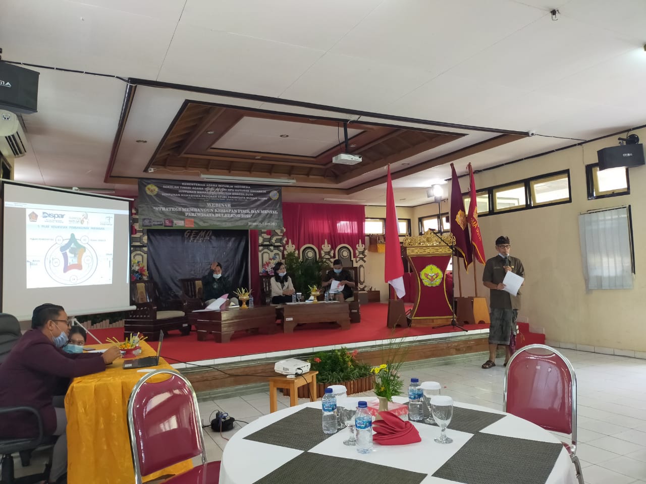 Dinas Pariwisata Kabupaten Buleleng melalui Kepala Bidang Destinasi Pariwisata Ketut Suteja, SE memberikan pemaparan dalam kegiatan Webinar yang dilaksanakan oleh himpunan Mahasiswa prodi Darma Duta STAHN Mpu Kuturan Singaraja, yang bertemakan Strategi Membangun Kesiapan Fisik dan Mental Pariwisata Buleleng Sabtu,1 Juni 2021.
