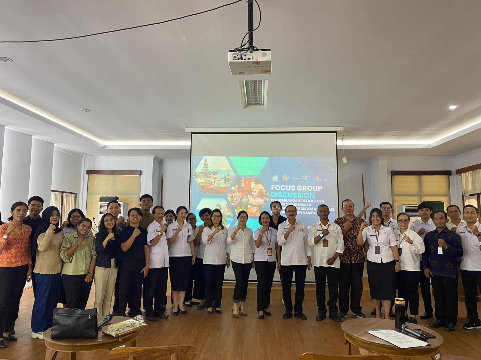 Dengan telah dilaksanakannya kegiatan pengumpulan serta penginputan data pada sistem kepariwisataan nasional (SISPARNAS), Dinas Pariwisata Provinsi Bali mengundang seluruh Dinas Pariwisata Kabupaten/Kota se-Bali untuk melaksanakan Focus Group Discussion Guna membahas hasil pengumpulan data kepariwisataan di Bali yang nantinya akan digunakan untuk mendukung pengembangan sistem kepariwisataan nasional.