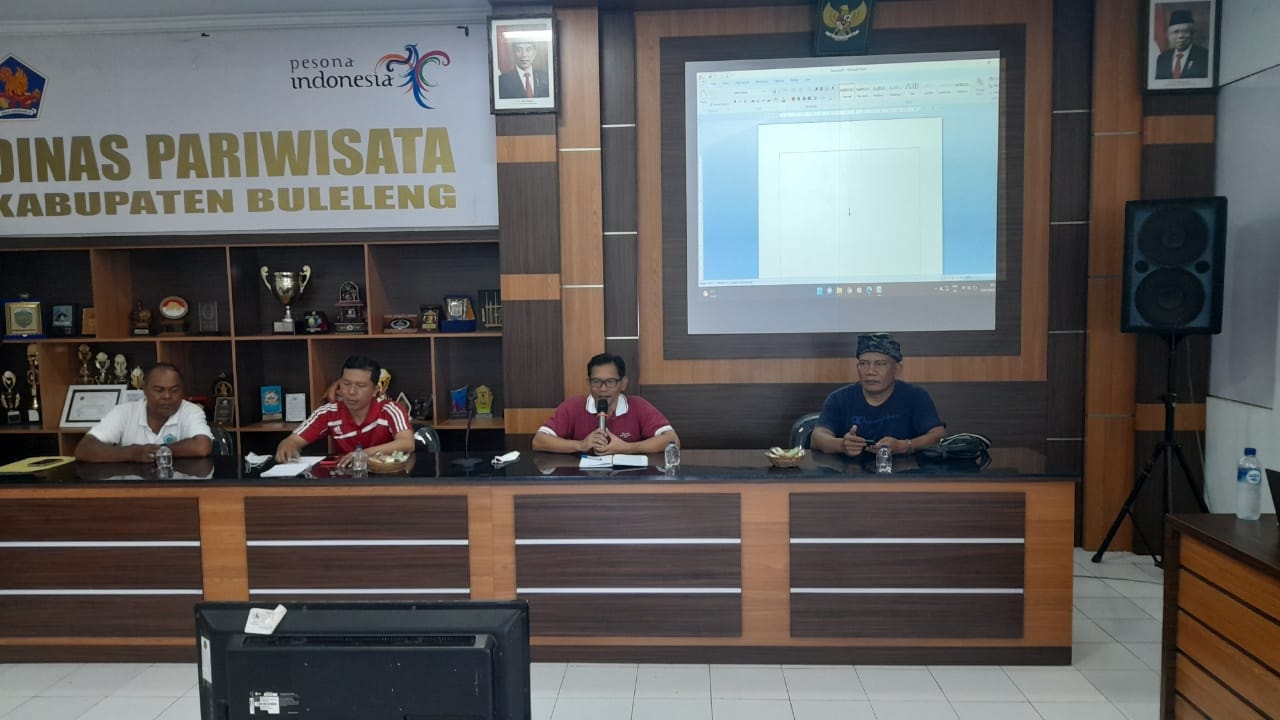 Rapat yang dipimpin langsung oleh Kepala Dinas Pariwisata Kabupaten Buleleng Gede Dody Sukma Oktiva Askara,S.Sos.,M.Si ini dihadiri juga oleh perwakilan dari Camat Buleleng, perwakilan dari desa Baktiseraga, Klian Desa Adat Galiran, konsultan perencana serta para pedagang sejumlah 16 orang yang berjualan di kawasan DTW Pantai Penimbangan.