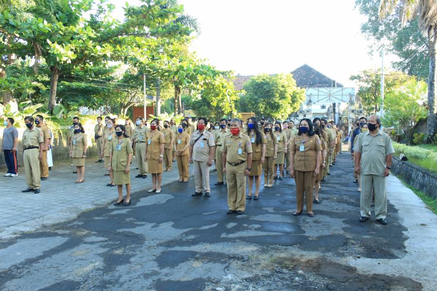 Setelah hampir 5 bulan pandemi virus Corona merebak dan meresahkan masyarakat, kini beberapa kantor di Lingkungan Pemerintah Kabupaten Buleleng mulai sedikit demi sedikit menerapkan kebiasaan baru atau new normal. Seperti yang dilakukan oleh Dinas Kebudayaan Kabupaten Buleleng yang mulai melaksanakan apel pagi pada Senin, 13 Juli 2020, dimana apel ini dipimpin oleh Kepala Dinas Kebudayaan Kabupaten Buleleng Gede Dody Sukma Oktiva Askara, S.Sos, M.Si yang diikuti oleh seluruh Kepala Bidang dan Kepala Seksi beserta seluruh staf Dinas Kebudayaan Kabupaten Buleleng. Apel pagi yang dilaksanakan tetap mentaati aturan new normal yaitu dengan tetap memakai masker pada saat apel dan tetap jaga jarak saat berbaris.