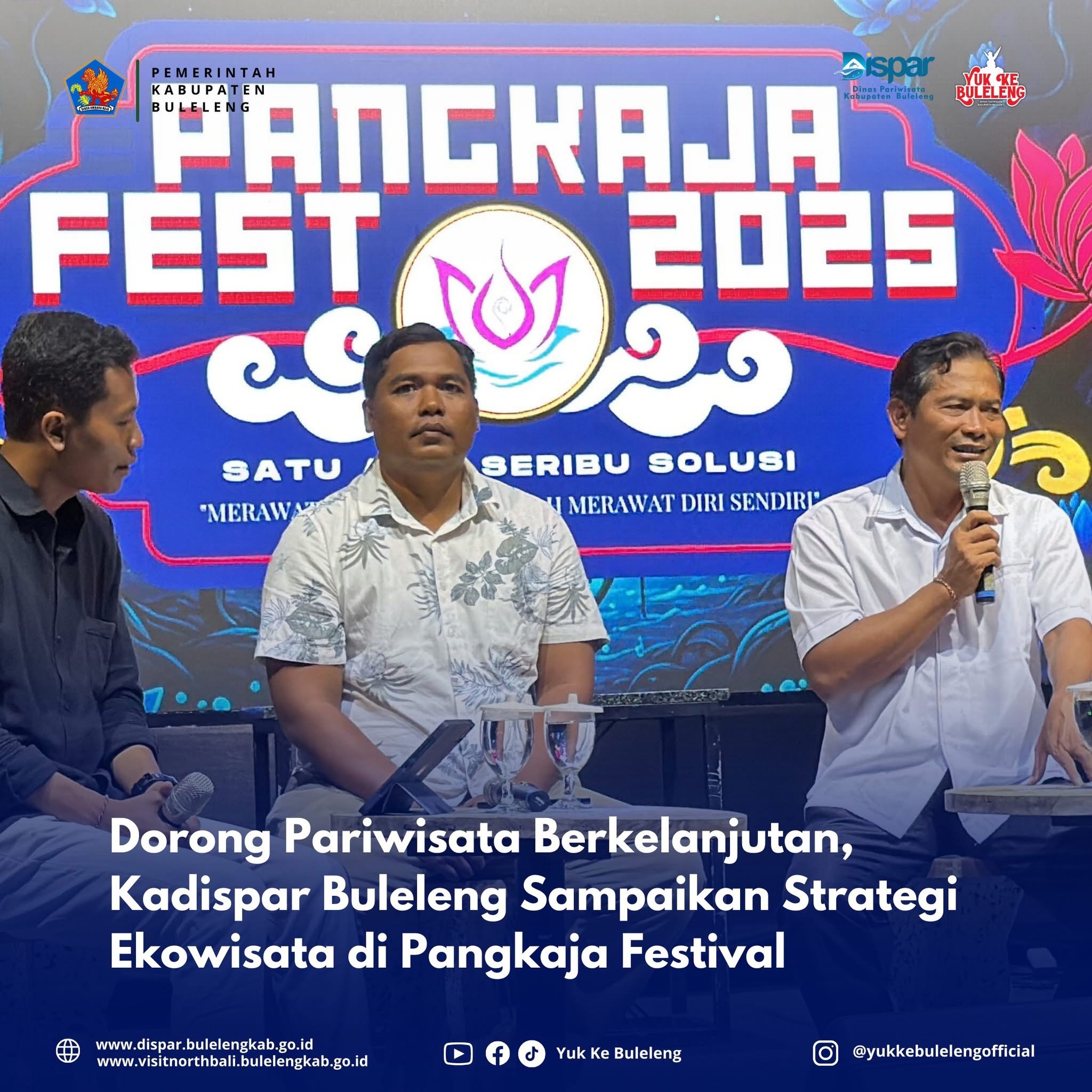 Seririt, 30 November 2025 - Kepala Dinas Pariwisata Kabupaten Buleleng, Gede Dody Sukma Oktiva Askara, hadir sebagai narasumber pada hari ketiga pelaksanaan Pangkaja Festival 2025 yang berlangsung di Lapangan Umum Seririt, Minggu (30/11). Dalam kesempatan tersebut, Kadispar turut didampingi oleh Wawan Ode atau I Ketut Sutrawan Selamet, Ketua Kelompok Sadar Wisata (Pokdarwis) Desa Pemuteran, yang turut menjadi pemateri dalam diskusi bertema pengembangan desa wisata di Buleleng.