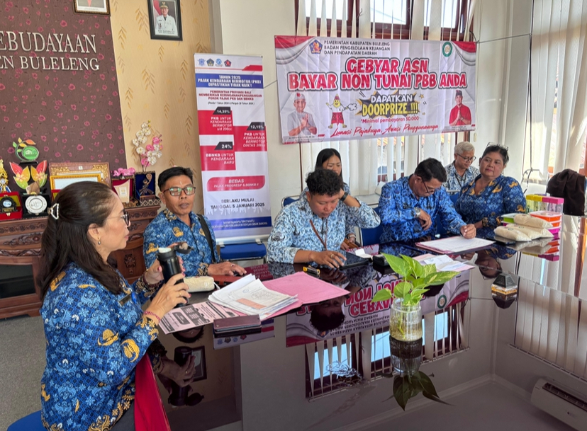 Pelaksanaan Gebyar ASN ini dilaksanakan di Ruang Rapat Dinas Kebudayaan dengan diterima langsung oleh Kasubag Umum dan Keuangan. Dimana tim dari BPKPD Kabupaten Buleleng hadir untuk memfasilitasi pembayaran PBB-P2 kepada seluruh pegawai, khususnya Aparatur Sipil Negara (ASN) yang belum melunasi kewajibannya.