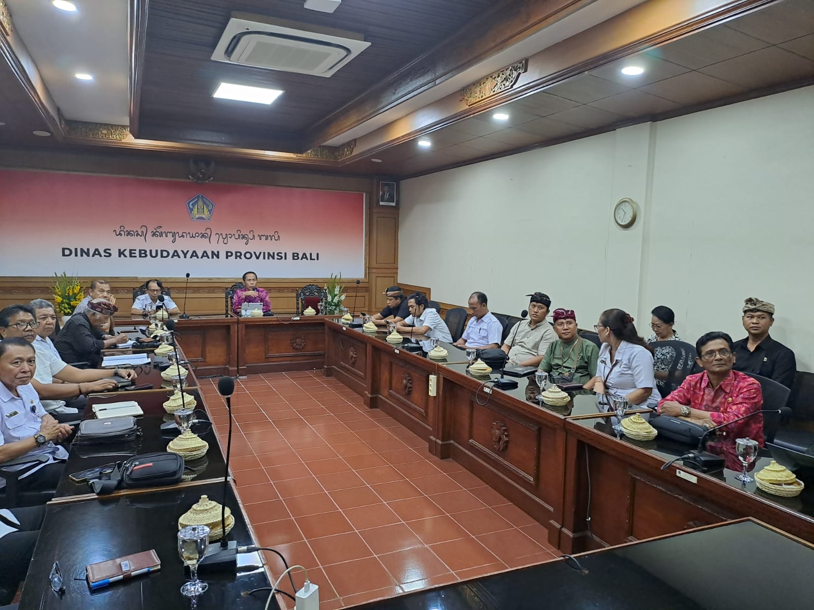 Rapat dibuka oleh Kepala Dinas Kebudayaan Provinsi Bali dengan dihadiri tim Kurator, Kepala Dinas atau yang mewakili terkait setiap Kabupaten/kota, serta seniman.