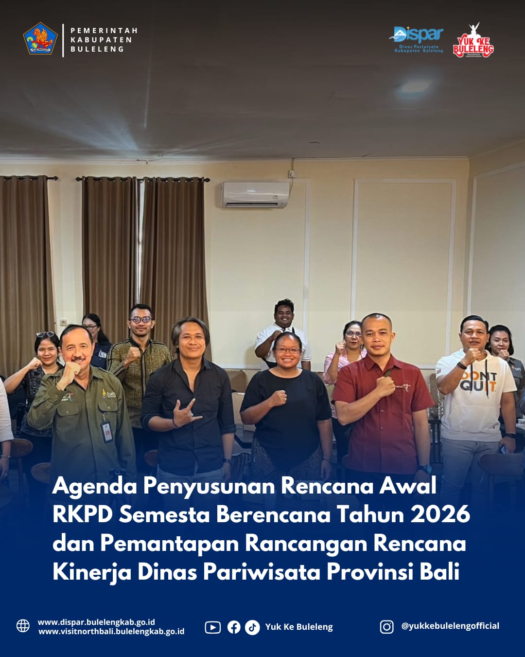 Denpasar, 21 Februari 2025 – Pada hari Jumat, 21 Februari 2025, bertempat di Ruang Rapat Etna, Dinas Pariwisata Provinsi Bali mengadakan rapat untuk membahas penyusunan Rencana Kerja Pemerintah Daerah (RKPD) Semesta Berencana Tahun 2026 serta pemantapan rancangan Rencana Kinerja Dinas Pariwisata Provinsi Bali. Rapat ini dihadiri oleh seluruh perwakilan Forum Perangkat Daerah Urusan Pariwisata Provinsi Bali.