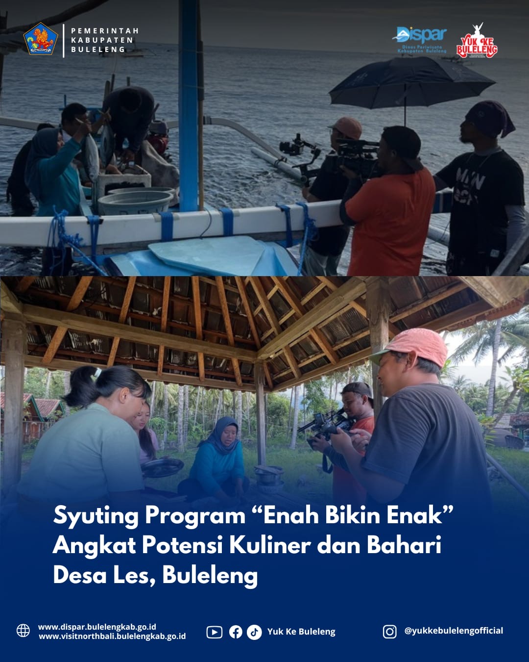 Buleleng, 17 Mei 2025 – Program televisi kuliner petualangan “Enah Bikin Enak” hari ini melakukan kegiatan syuting di Desa Les, Kecamatan Tejakula, Kabupaten Buleleng. Syuting kali ini mengangkat potensi kuliner khas daerah, yaitu sate lilit, serta potensi bahari dari para nelayan lokal yang menjadi penghasil ikan tuna berkualitas.