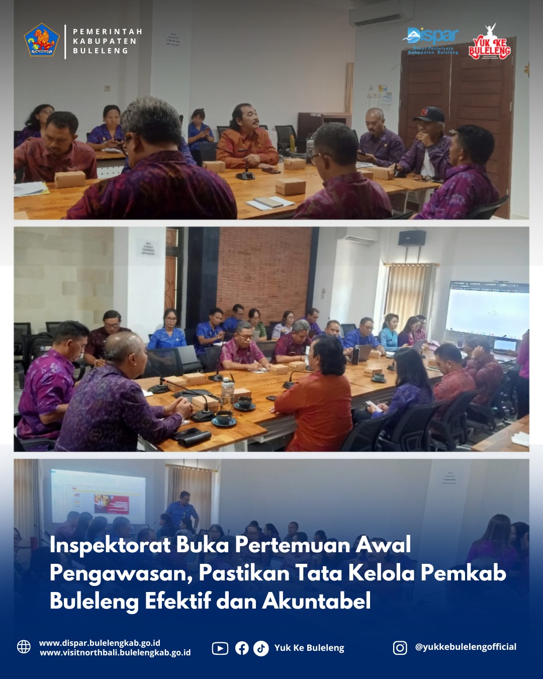 Buleleng 7 Oktober 2025 – Inspektorat Daerah Kabupaten Buleleng hari ini menggelar Pertemuan Awal Pengawasan Umum dan Teknis Penyelenggaraan Urusan Pemerintahan Daerah di lingkungan Pemerintah Kabupaten Buleleng. Kegiatan ini dibuka secara resmi oleh Kepala Inspektorat Daerah Kabupaten Buleleng.