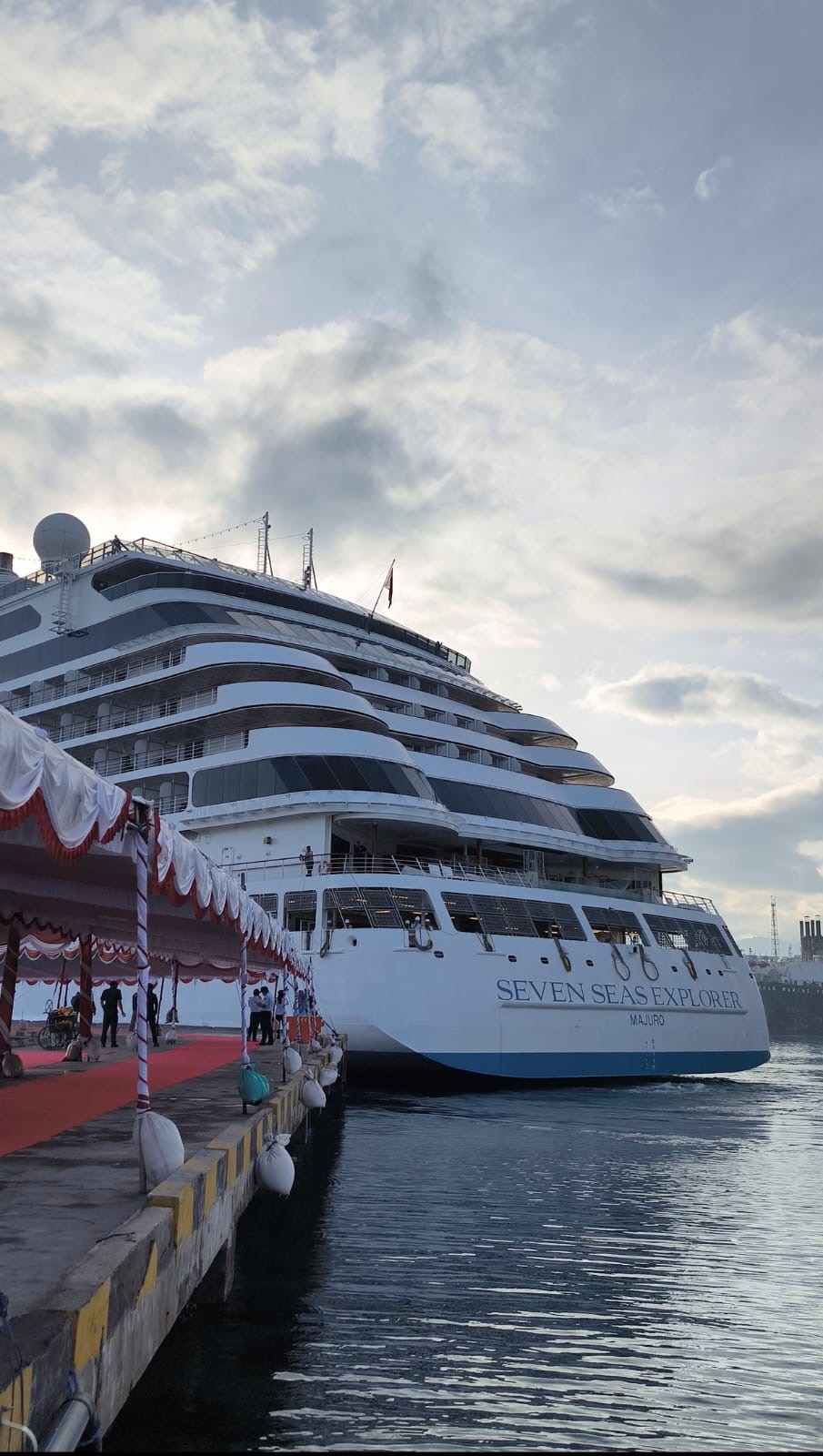 Kapal pesiar MV. Seven Seas Explorer bertolak dari Pelabuhan Tanjung Benoa, dijadwalkan memasuki perairan Celukan Bawang pada pukul 09.45 WITA dan sandar dengan aman di Dermaga II pada pukul 10.15 WITA.