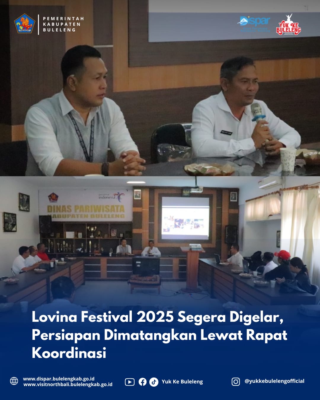 Dalam rangka pelaksanaan Lovina Festival 2025 yang akan diselenggarakan pada 24–27 Juli 2025 di kawasan Lovina, dengan dua venue utama yakni Pantai Binaria dan Pantai Tasik Madu, Kabupaten Buleleng, telah dilaksanakan rapat koordinasi guna memantapkan langkah awal pelaksanaan festival tahunan tersebut.