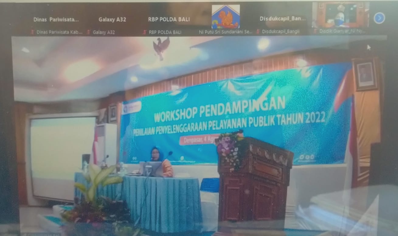 Adyatama Kepariwisataan dan Ekonomi Kreatif Ahli Muda Substansi Pelayanan dan Informasi Pariwisata menyampaikan laporan zoom meeting perihal Pendampingan Penilaian Penyelenggaraan Pelayanan Publik Tahun 2022 yang diselenggarakan oleh Ombudsman Republik Indonesia Perwakilan Provinsi Bali pada hari Kamis, 4 Agustus 2022.