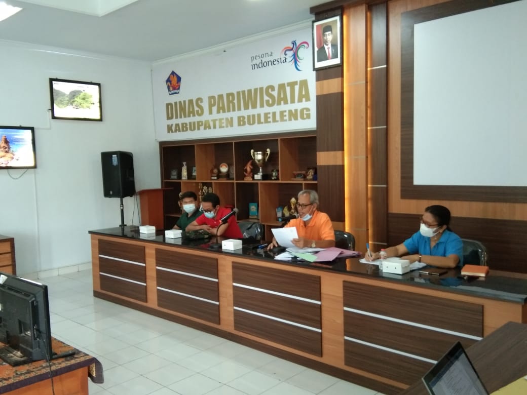 Singaraja, 25 Juni 2021 - Dalam rangka menindaklanjuti hasil proses pemilihan penyedia barang/jasa untuk paket pekerjaan pembangunan Plaza/Pusat Jajanan Kuliner, Dispar Buleleng mengadakan koordinasi bersama CV. Krisna Putra Bali selaku pemenang tender dan diikuti juga oleh beberapa SKPD terkait. Adapun yang hadir dalam rapat koordinasi hari ini adalah Inspektur Daerah Kab. Buleleng, Kepala BPKPD Kab. Buleleng, Kabag PBJ Setda Kab. Buleleng, Kabid Destinasi Wisata Dispar Buleleng, Direktur CV. Krisna Putra Bali, Direktur CV. Uditi Plan selaku konsultan perencana dan pengawas pada proyek ini. Rapat koordinasi ini membahas terkait hasil proses pemilihan penyedia barang/jasa untuk paket pekerjaan pembangunan Plaza/Pusat Jajanan Kuliner di DTW Air Sanih, Desa Bukti dan terkait pemilihan paket pekerjaan pembangunan Plaza/Pusat Jajanan Kuliner di DTW Pantai Lovina, desa Kalibukbuk. Dalam pelaksanaannya nanti, Kabag PBJ Setda Kab. Buleleng tetap mengingatkan bahwa pasca pelaksanaan dilapangan, agar pihak pelaksana tetap memenuhi persyaratan administratif guna mencegah hal yang tidak diinginkan terjadi.