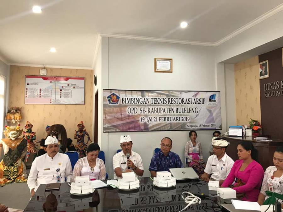 Arsip Nasional Republik Indonesia (ANRI) melalui Dinas Kebudayaan Buleleng dan Dinas Arsip dan Perpustakaan Buleleng melaksanakan Bimbingan Teknis Restorasi Arsip OPD Se-Kabupaten Buleleng yang dilaksanakan selama 3 hari dimulai dari Selasa, 19 Februari sampai dengan 21 Februari 2019. Bimtek hari pertama ini dilaksanakan di ruang rapat Dinas Kebudayaan Buleleng dan dibuka langsung oleh Asisten III Kabupaten Buleleng Bapak Gede Suyasa. Bimtek ini dimulai dari pukul 09.00 wita sampai dengan pukul 11.00 wita dan dilanjutkan dengan praktik langsung restorasi arsip di Gedong Kirtya pada pukul 13.00 wita. Bimtek ini diikuti oleh perwakilan dari masing-masing OPD Se-Kabupaten Buleleng, Kepala Sub Direktorat Restorasi Arsip Drs.Anak Agung Gede Sumardika beserta tim dari ANRI Jakarta, Kepala Dinas Arsip Provinsi Bali dan beberapa staf Gedong Kirtya Dinas Kebudayaan Buleleng. Gedong Kirtya memiliki banyak buku-buku yang harus direstorasi. Kegiatan restorasi ini baru pertama kali dilakukan. Dari pihak Gedong Kirtya sudah menyiapkan ruangan dan buku-buku apa saja yang perlu di restorasi. Adapun yang perlu direstorasi adalah buku-buku yang banyak berbahasa Belanda yang isinya berupa aturan dan adat-istiadat. Karena itu belum ada Sumber Daya Manusia yang mampu membaca atau mengerti dengan mudah Bahasa Belanda yang bisa dikatakan sulit. Bukan lontar yang akan direstorasi tapi buku-buku. Jika ada buku yang robek juga bisa direstorasi. Dari pihak ANRI memang sudah memiliki program Arsip Pelestarian Budaya,di bulan Februari untuk mengadakan kegiatan restorasi arsip, melakukan bimbingan teknis kepada pegawai, dan arah program di ANRI diarahkan ke Dinas Kebudayaan.