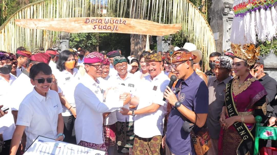Menteri Pariwisata dan Ekonomi Kreatif, Sandiaga Salahuddin Uno bersama jajaran mengunjungi desa wisata Sudaji di kecamatan Sawan, Kabupaten Buleleng dalam rangka Anugerah Desa Wisata (ADWI) 2022.
