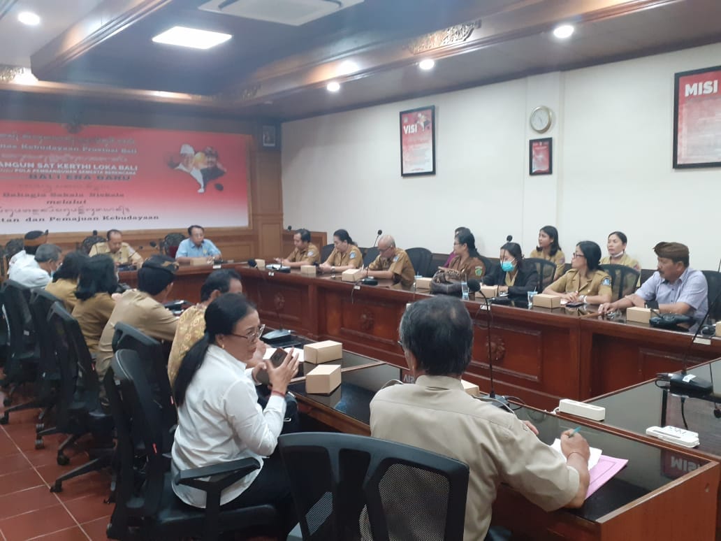 Pamong Budaya Ahli Muda Substansi Adat & Staf seijin pimpinan menghadiri rapat terkait evaluasi pelaksanaan Utsawa Dharmagita Provinsi Bali Tahun 2022 dan kegiatan pembinaan Dharmagita Widyasabha Provinsi Bali tahun 2022 di Ruang Rapat Padma Dinas Kebudayaan Provinsi Bali. Dalam Rapat tersebut dipaparkan tentang pelaksanaan Utsawa Dharmagita tahun 2022 yang mengangkat tema “???????????????? ????????????????????????: ???????????????????????????????????????? ????????????????????????” dimana terdapat beberapa jenis dan kategori lomba yang belum sesuai untuk Utsawa Dharmagita Tingkat Nasional dan alasan-alasan beberapa Kabupaten /kota yang tidak ikut partisipasi dalam Utsawa Dharmagita Provinsi Bali tahun 2022. Pada pertemuan ini juga dibahas mengenai Tema yang akan diusung pada Utsawa Dharmagita Provinsi Bali Tahun 2023, Tempat dan bulan pelaksanaan Utsawa Dharmagita Tahun 2023 dan jenis /kategori Utsawa Dharmagita Tingkat Nasional 2024.