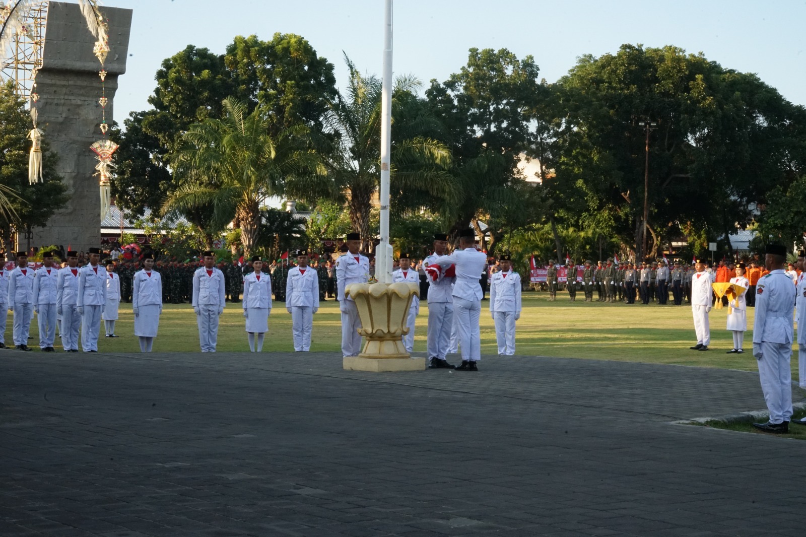 Kepala Dinas Kebudayaan Kabupaten Buleleng hadir dalam acara Upacara Penuruan Bendera Merah Putih Kabupaten Buleleng tahun 2024 di Lapangan Ngurah Rai Singaraja, Sabtu (17/8/2024)