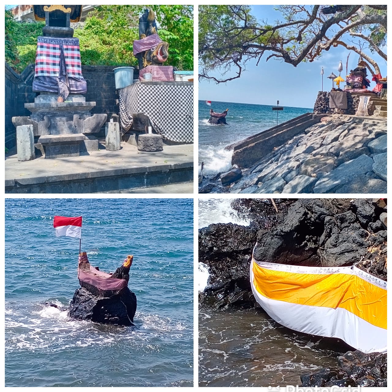 Disana nampak Patung perahu yang juga merupakan bagian dari pura itu merupakan sejarah dari perjalanan leluhur Ida Danghyang Nirata, dimana pada saat beliu sedang metilas di Ponjok Batu, di lihatnya perahu Bendega orang Sasak sedang mengapung- apung di pantai, beliau Ida Danghyang Nirata mendekati, si bendega /nelayan tersebut, Ida bertanya kepada bendega/nelayan tersebut, nanak dari mana dan mau kemana? bendega/menjawab saya dari Sasak sedang mencari ikan, perahu saya bocor dan kampih disini jawab si bendega, terus Ida Danghyang Nirata menawarkan jasa mari saya bantu perbaiki, Ida Danghyang Nirata memperbaiki perahu yang bocor, sudah selasai Ida Danghyang Nirata ikut ke Sasak di pantai Senggigi, sekarang pura Batu Bolong.