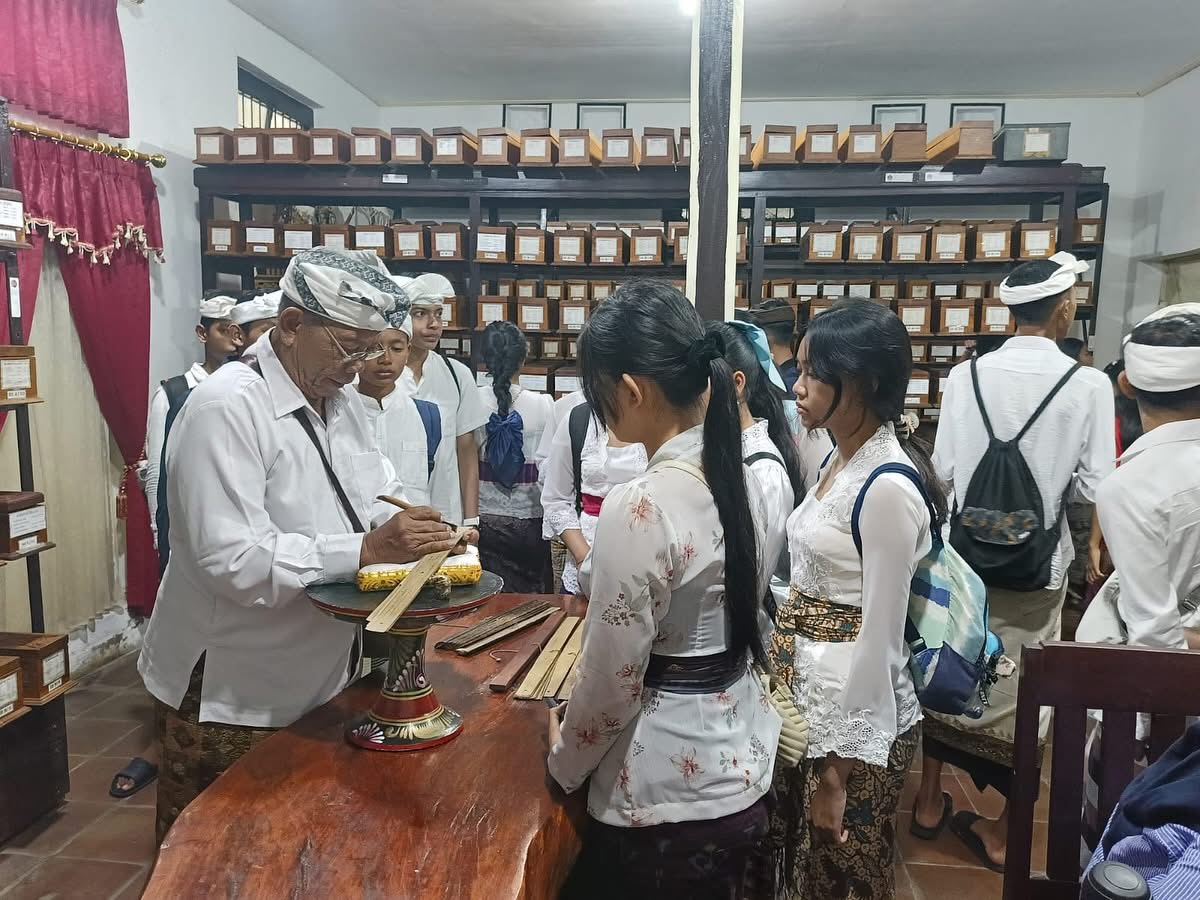 Pengunjung disambut oleh pemandu yang menjelaskan sejarah Museum Gedong Kirtya, yang didirikan pada tahun 1928, serta pentingnya koleksi lontar bagi kebudayaan Bali. Dalam kunjungan tersebut, para siswa diajak melihat langsung beragam lontar kuno yang mengandung naskah-naskah kuno tentang agama, sejarah, sastra, hingga pengobatan tradisional Bali. Mereka tampak antusias mendengarkan kisah di balik setiap koleksi lontar yang ada, serta mengamati teknik penulisan di atas daun lontar yang masih dilestarikan hingga kini. Serta siswa diajak untuk berkunjung ke Perpustakaan Buku.