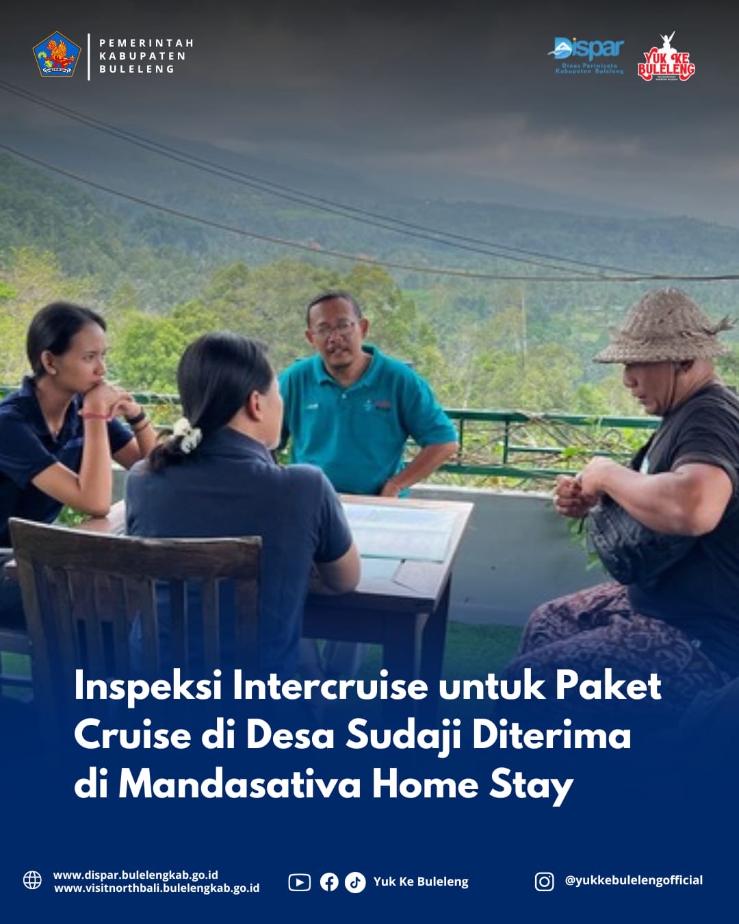 Tim Intercruise, yang merupakan perusahaan yang bergerak di bidang manajemen layanan wisata kapal pesiar internasional, melakukan kunjungan untuk mengevaluasi kesiapan fasilitas dan infrastruktur di Desa Sudaji, sebagai salah satu destinasi yang dipertimbangkan untuk dijadikan bagian dari paket wisata cruise. Kegiatan ini bertujuan untuk memastikan bahwa desa ini memiliki potensi untuk menarik wisatawan kapal pesiar yang datang ke Bali, serta mendukung pengembangan pariwisata berbasis komunitas di Buleleng.