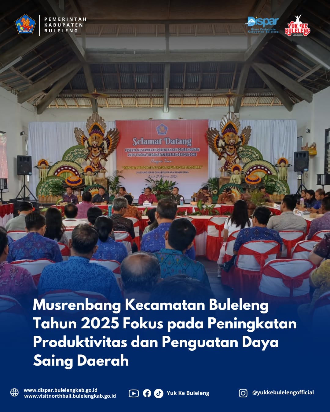 Buleleng, 21 Februari 2025– Kegiatan Musyawarah Perencanaan Pembangunan (Musrenbang) Rencana Kerja Pemerintah Daerah (RKPD) Kabupaten Buleleng Tahun 2025 telah dilaksanakan pada Jumat, 21 Februari 2025 dengan tema Peningkatan Produktivitas Untuk Penguatan Daya Saing Daerah. Acara tersebut bertempat di Kantor Lurah Banjar Jawa Kecamatan Buleleng dan dibuka oleh Camat Buleleng.