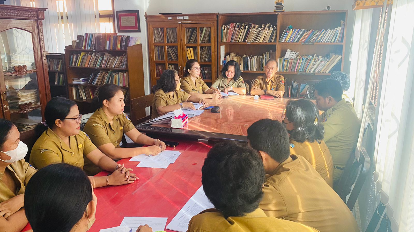Rapat Staf UPTD Gedong Kirtya Awal Tahun 2024 yang dipimpin oleh kepala Dinas Kebudayaan, Senin 8 Januari 2024.