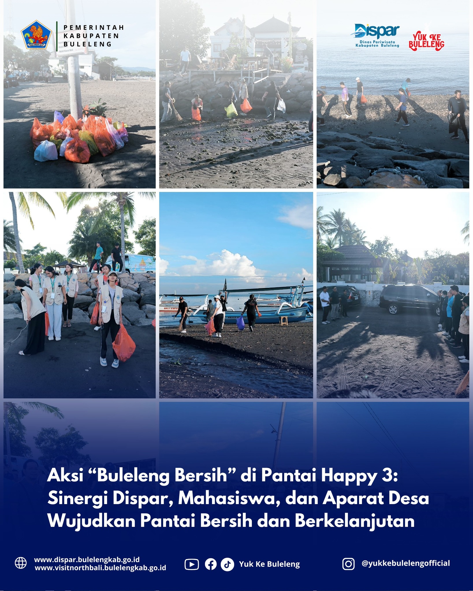 Aksi " Buleleng Bersih " di Pantai Happy 3 Sinergi Dispar, Mahsiswa, Aparat Desa Wujudkan Pantai Bersih dan Berkelanjutan