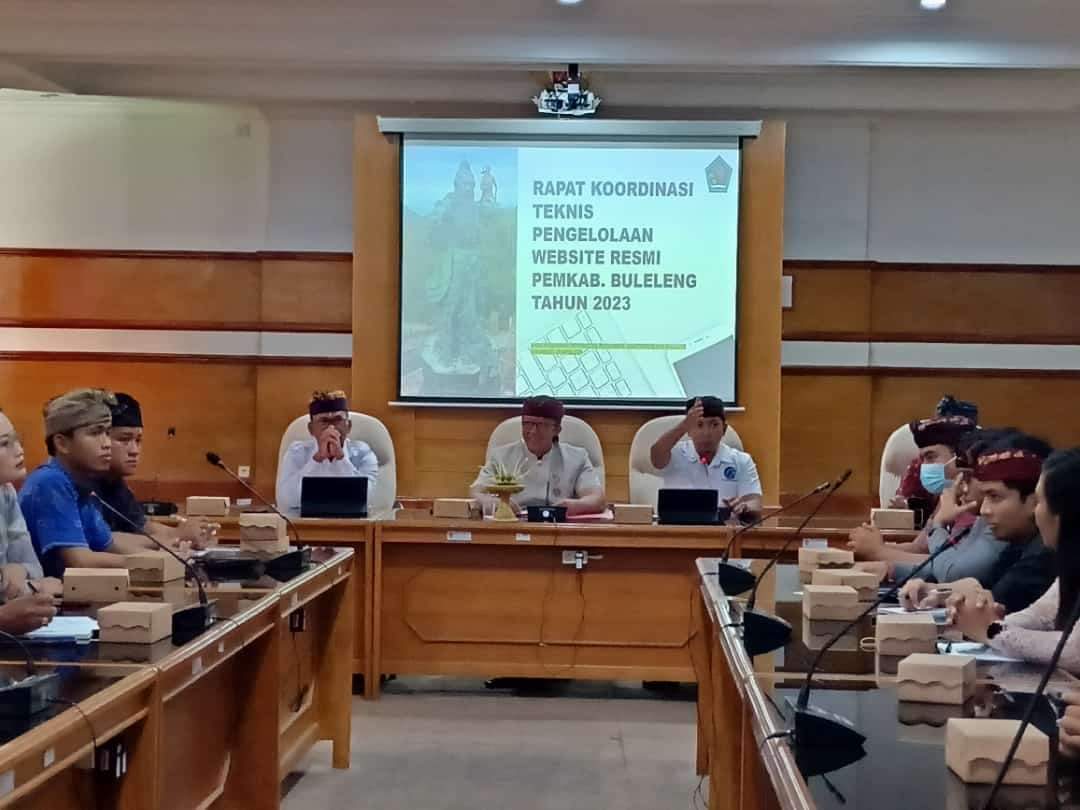 Dalam rangka optimalisasi pengelolaan website resmi pemerintah Kabupaten Buleleng tahun 2023, Pemerintah Kabupaten melalui Dinas Komunikasi, Informatika, Persandian, dan Statistik (Diskominfosanti) Buleleng melaksanakan rapat koordinasi teknis pengelolaan Website Resmi Pemerintah Kabupaten Buleleng.
