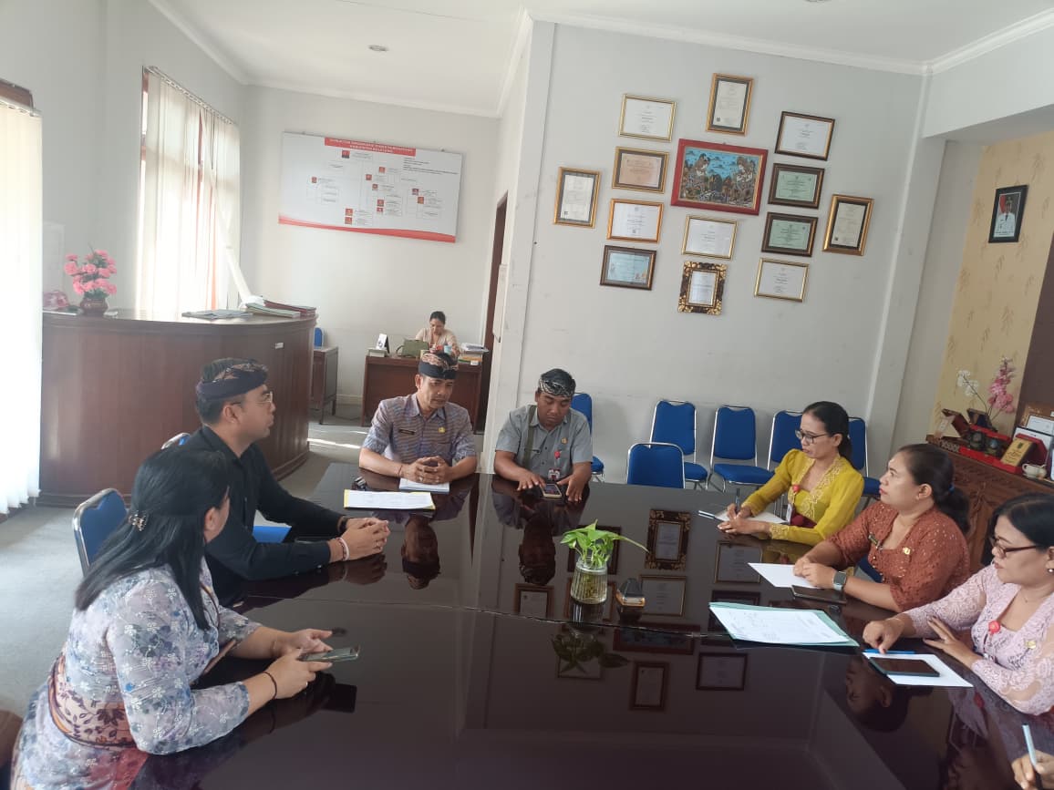Sukawirya,S.I,Pust dan Komang Indirayati,S.S.T.Ars. Tim Monev diterima langsung oleh Plt. kasubag UPTD Gedong Kirtya.