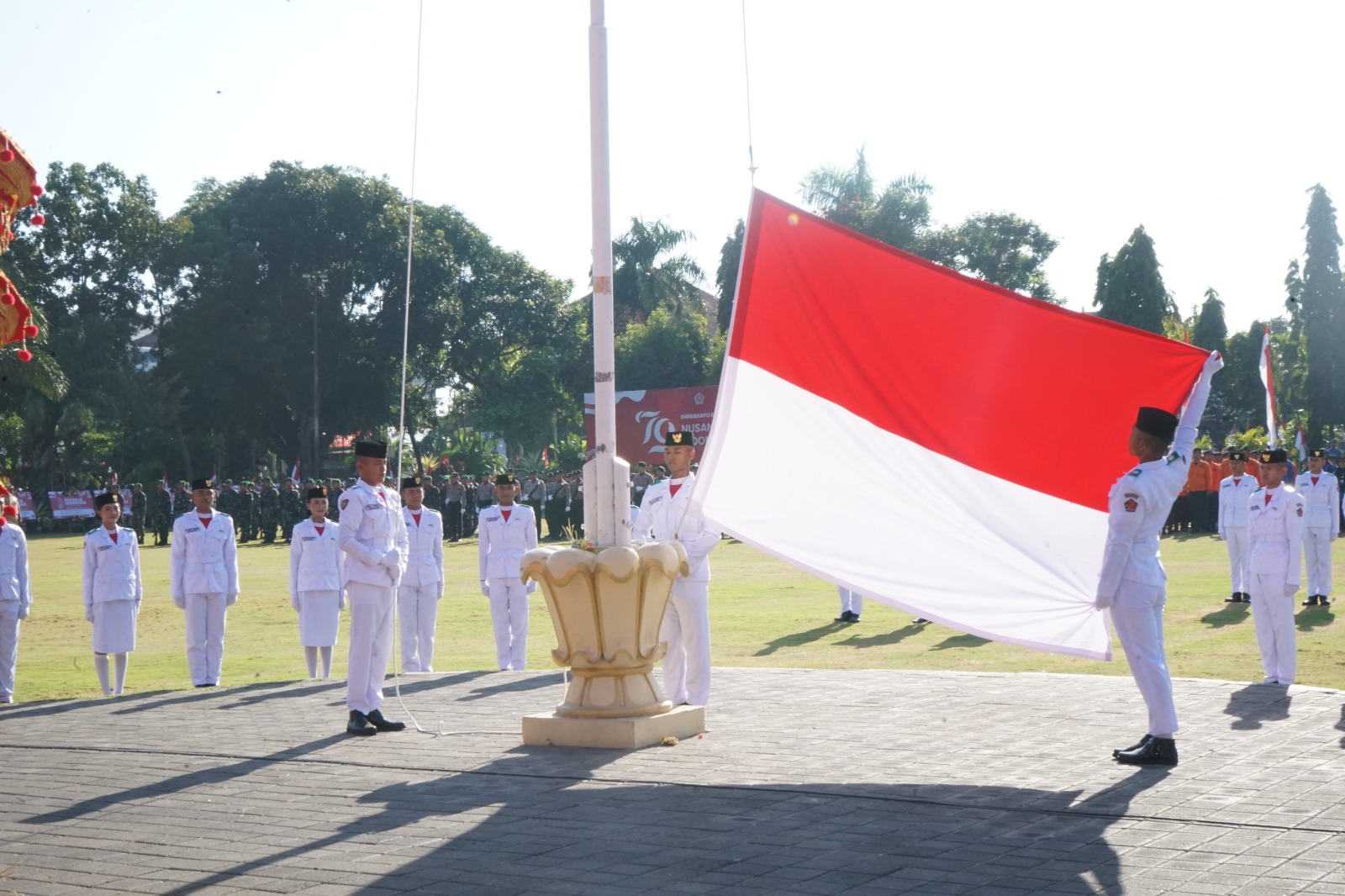 Dimana Penjabat (Pj) Bupati Buleleng Ketut Lihadnyana bertindak sebagai inspektur Upacara Peringatan Detik-Detik Proklamasi serta komandan upacara yakni Letda Inf. I Komang Arnatha yang kesehariannya bertugas sebagai Danton Senjata Mesin Sedang Kompi Bantuan Yonif Raider 900/SBW.