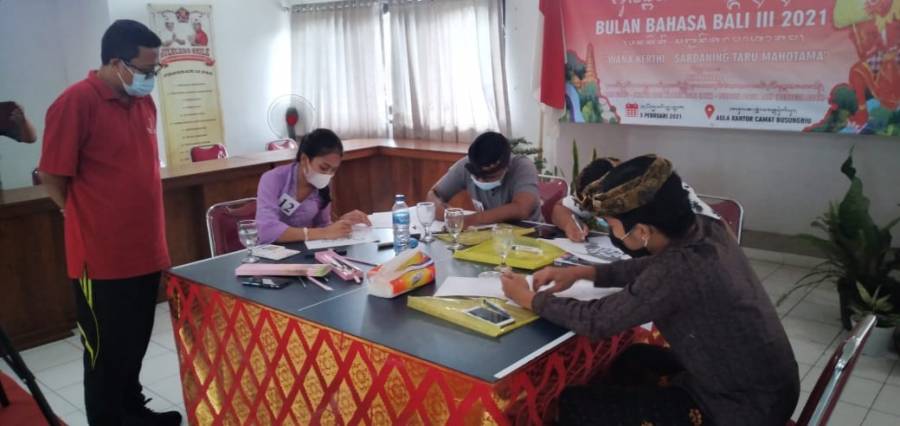 Bulan Bahasa Bali yang dilaksanakan setiap bulan Februari dalam rangka melestarikan bahasa dan aksara Bali pada tahun ini memang berbeda dibandingkan dengan tahun lalu. Pandemi covid-19 memang banyak mempengaruhi pelaksanaan kegiatan terutama kegiatan yang dapat menimbulkan keramaian. Maka dari itulah pelaksanaan Bulan Bahasa Bali tahun 2021 ini dilaksanakan secara daring (dalam jaringan) atau bisa dikatakan secara online dan secara luring (luar jaringan) atau secara langsung. Beberapa lomba yang dilaksanakan dibagi menjadi 2 bagian ada yang secara daring dan luring. Pada pelaksanaan pertama dilaksanakan secara daring beberapa lomba diantaranya lomba Baligrafi, lomba Mesatua Bali, lomba Mapidarta Bahasa Bali. Lomba dilaksanakan di masing-masing Kecamatan di Kabupaten Buleleng pada Jumat (5/2/2021). Dihadiri hanya oleh peserta dan panitia pelaksana beberapa orang. Pelaksanaan lomba tidak dibuka untuk umum dan para peserta juga tidak diperbolehkan membawa keluarga atau teman. Hal tersebut dilakukan agar tidak menimbulkan keramaian di tempat lomba. Pada lomba Baligrafi panitia merekam peserta dari mulai melukis sampai selesai. Lomba Mesatua dan Mapidarta pada pelaksanaan direkam dari awal sampai akhir kemudian nanti diupload ke youtube masing-masing Kecamatan dan nanti link dari video youtube tersebut dikirim ke panitia untuk diserahkan ke dewan juri untuk dinilai nantinya. Pelaksanaan lomba kali ini memang agak sedikit sulit karena membutuhkan waktu lebih banyak karena harus dibagi menjadi 2 hari dan di tempat yang berbeda-beda. Tetapi walau begitu, tidak menyurutkan semangat para peserta untuk tetap mengikuti lomba dan tetap mengikuti aturan protokol kesehatan yaitu tetap memakai masker dan menjaga jarak.