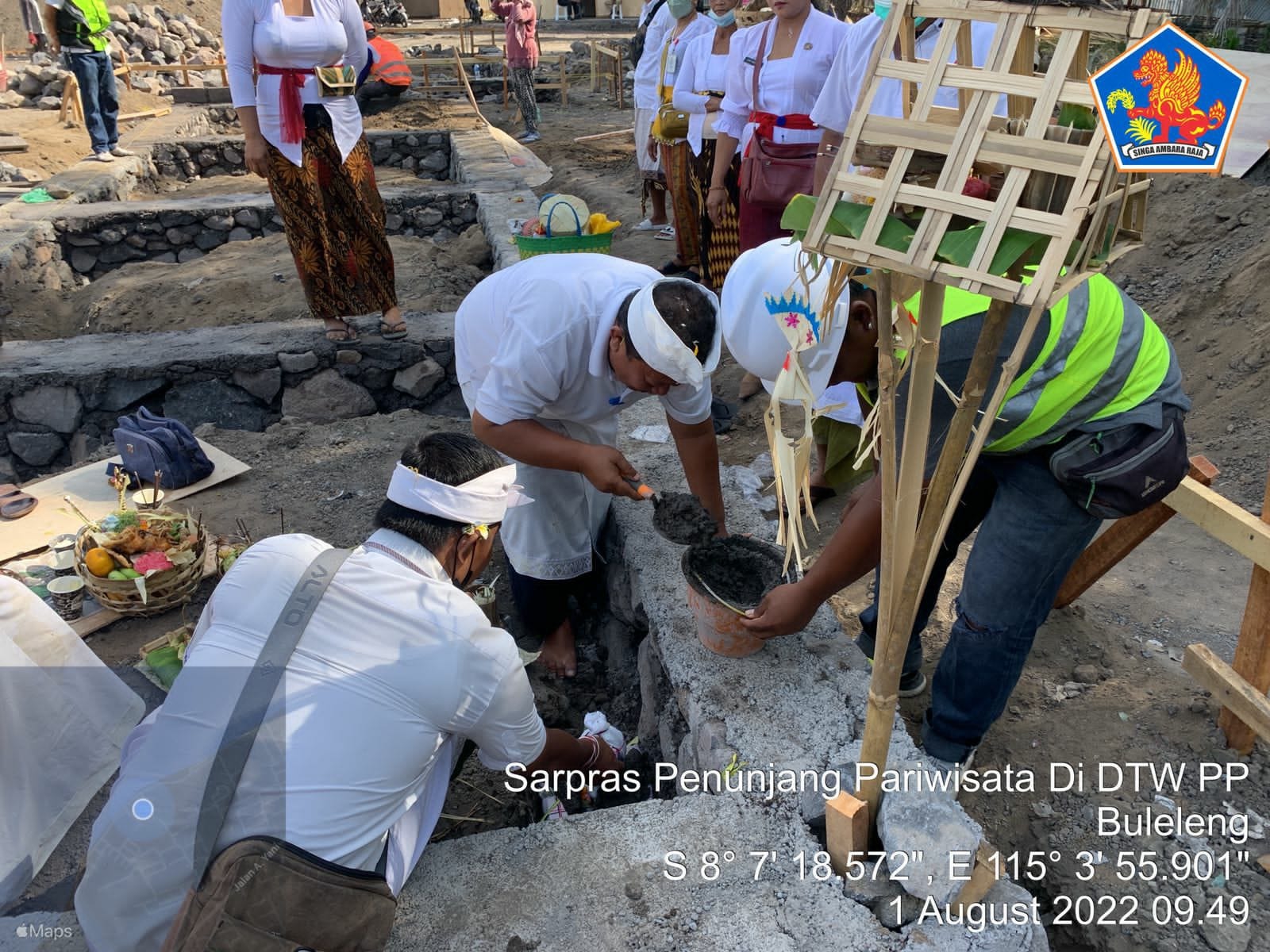 Bertempat di areal pembangunan sarana prasarana (Sarpras) penunjang pariwisata dalam kawasan DTW Pantai Penimbangan, desa Baktiseraga, telah dilaksanakan prosesi upacara Ngeruak pada Senin (1/8) pagi.