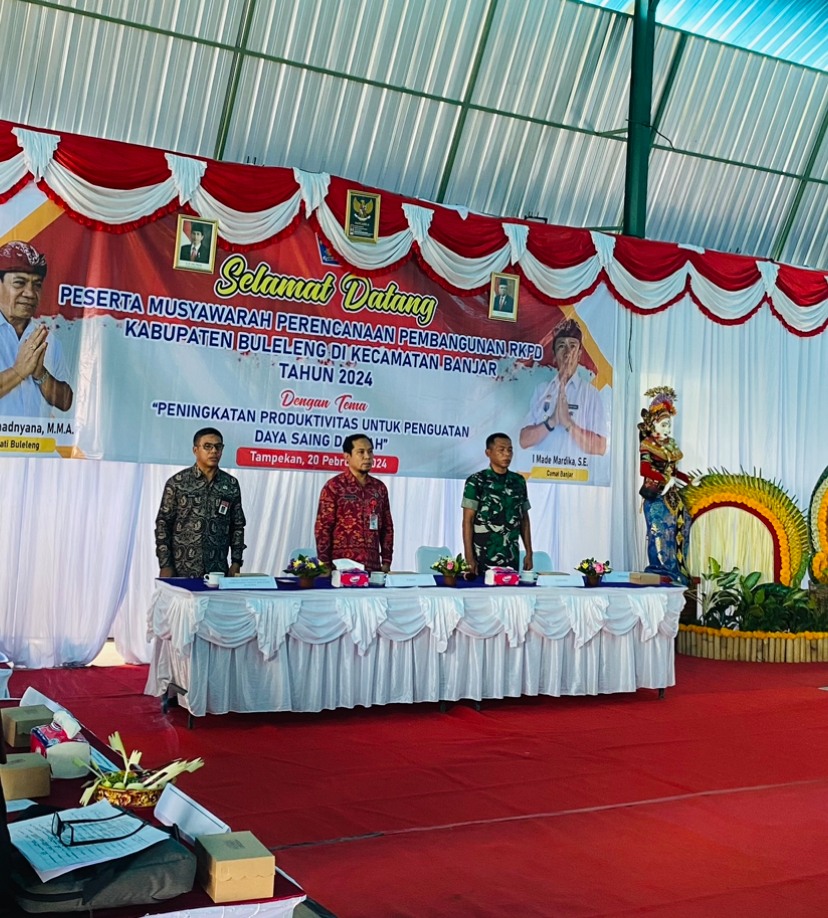 Rapat kali ini dilaksanakan untuk Menindaklanjuti surat dari Kepala Badan Perencanaan Pembangunan Daerah Kabupaten Buleleng Nomor : 000.7.1.4 / 303 / I /2024 tanggal 29 Januari 2024, dimana rapat musrenbang di buka langsung oleh sekretaris Camat Banjar dengan melaporakan beberapa inti agenda pada musrenbang kali ini, serta didampingi oleh kepala Bapedda, kapolsek Banjar dan Dandramil.