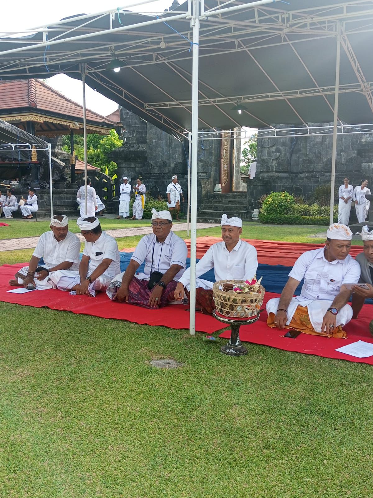 Kepala Dinas Kebudayaan Kabupaten Buleleng, mewakili Penjabat Bupati, turut hadir dalam acara ini sebagai bentuk penghormatan dan syukur kepada para pahlawan serta pejuang kemerdekaan Republik Indonesia. Kegiatan yang bertema *"Sembahyang Bersama Ngerestitiyang Jagat"* ini dilaksanakan di Pura Agung Jagat Nata, Kabupaten Buleleng, pada pukul 16.00 WITA. Para peserta yang hadir mengenakan pakaian adat sembahyang, dengan pemangku yang memimpin upacara membawa perlengkapan genta lengkap.