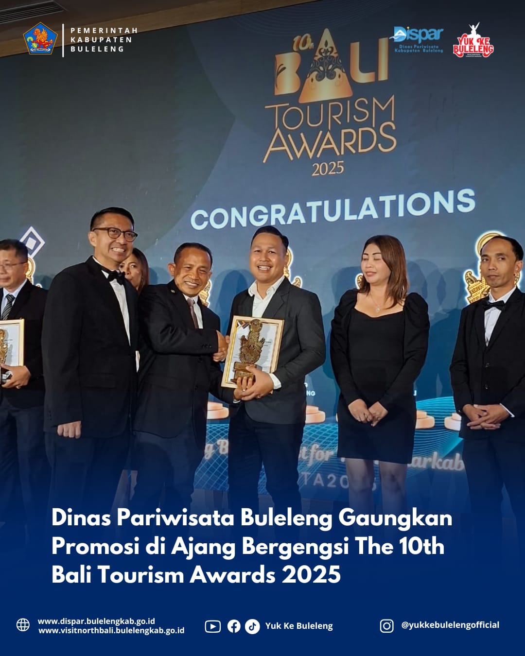 Sejumlah tokoh dan institusi pariwisata menerima penghargaan dalam berbagai kategori, mulai dari Bali Top Hospitality Leader hingga Bali Leading Resort of The Year. Salah satu yang membanggakan, inisiatif “Yuk ke Buleleng – Dinas Pariwisata Kabupaten Buleleng” berhasil masuk nominasi Bali Leading Tourism Promotion Initiative, menandai semakin kuatnya posisi Buleleng di panggung pariwisata Bali.