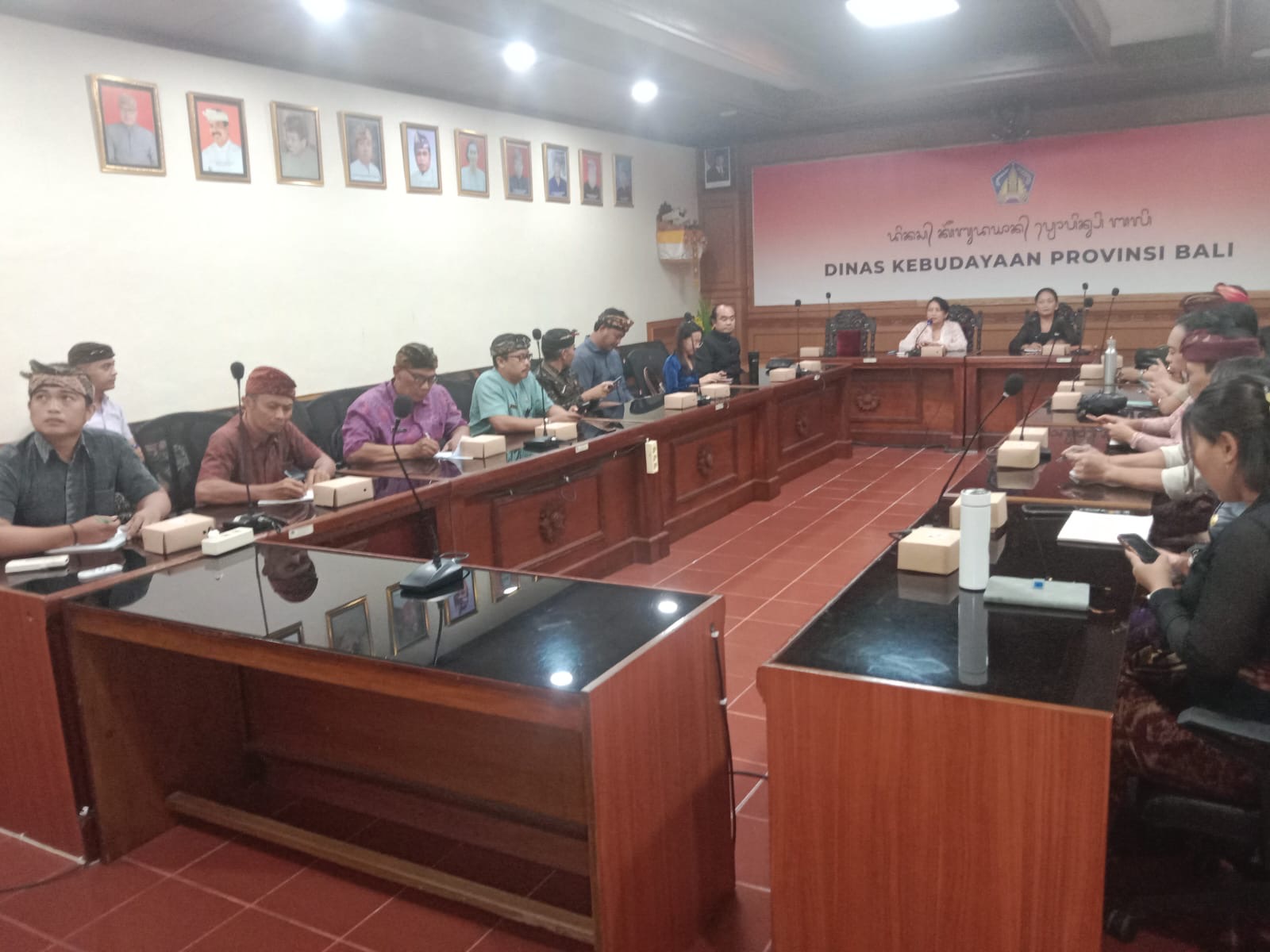 Rapat dipimpin oleh Kepala Bidang Cagar Budaya dan Permusiuman Dinas Kebudayaan Provinsi Bali Ibu Ayu Putu Lilik Handayani , AP, SH, MH. Rapat dihadiri oleh perwakilan Dinas Kebudayaan dari Kabupaten/kota dan perwakilan BPK wil. XV ibu.